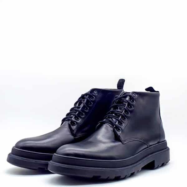 Bota tipo trench con corte urbano, fabricada en piel vitello color negro, en su interior cuenta con forro de res y plantilla confort.