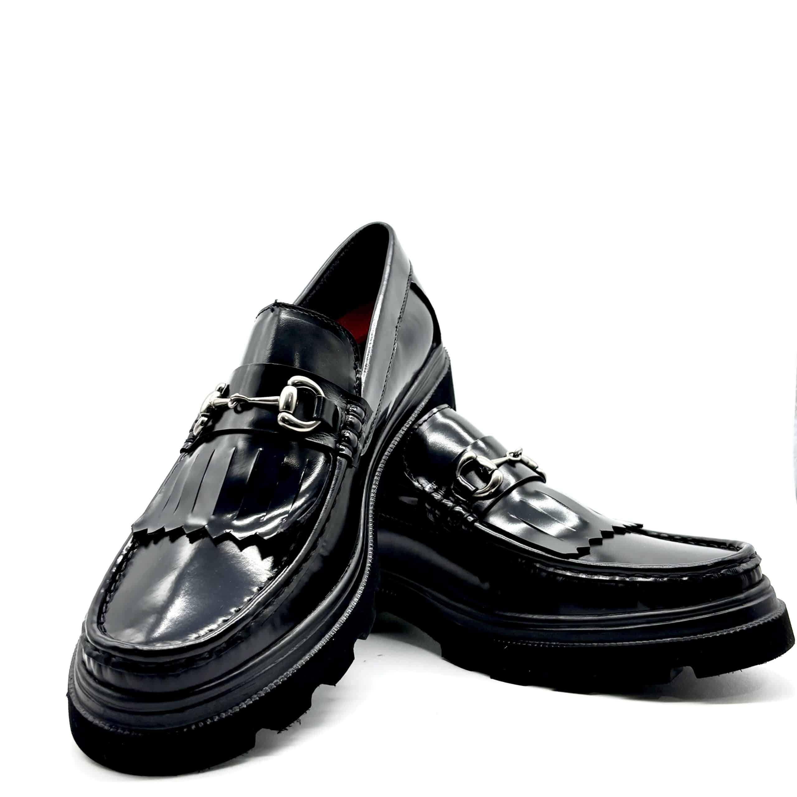 Loafer confeccionado en piel terminado camaleon, forro de res, plantilla confort con contraste rojo, suela chunky ultra ligera de 3 cm.