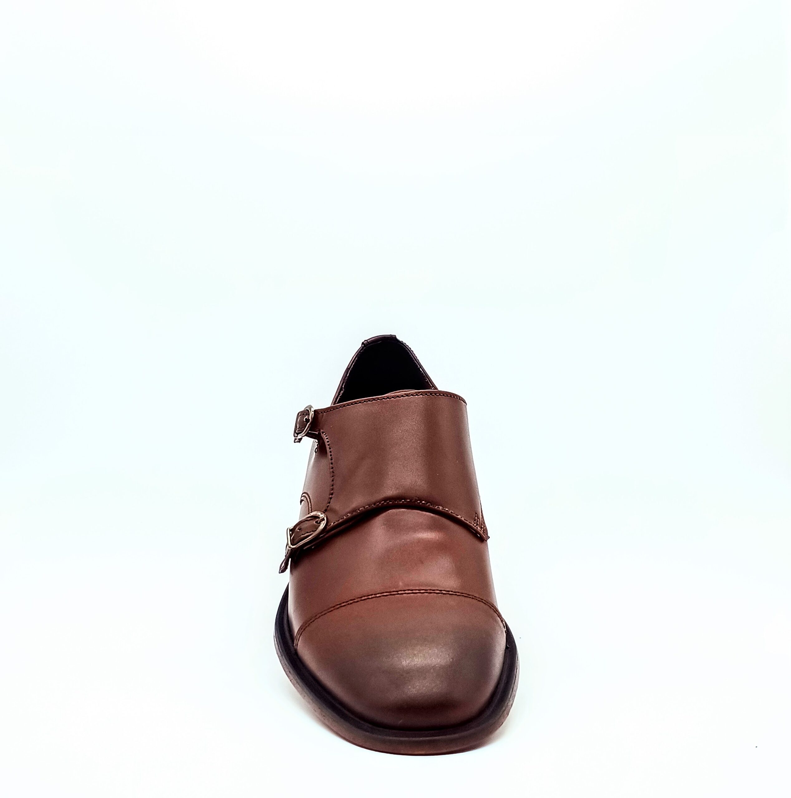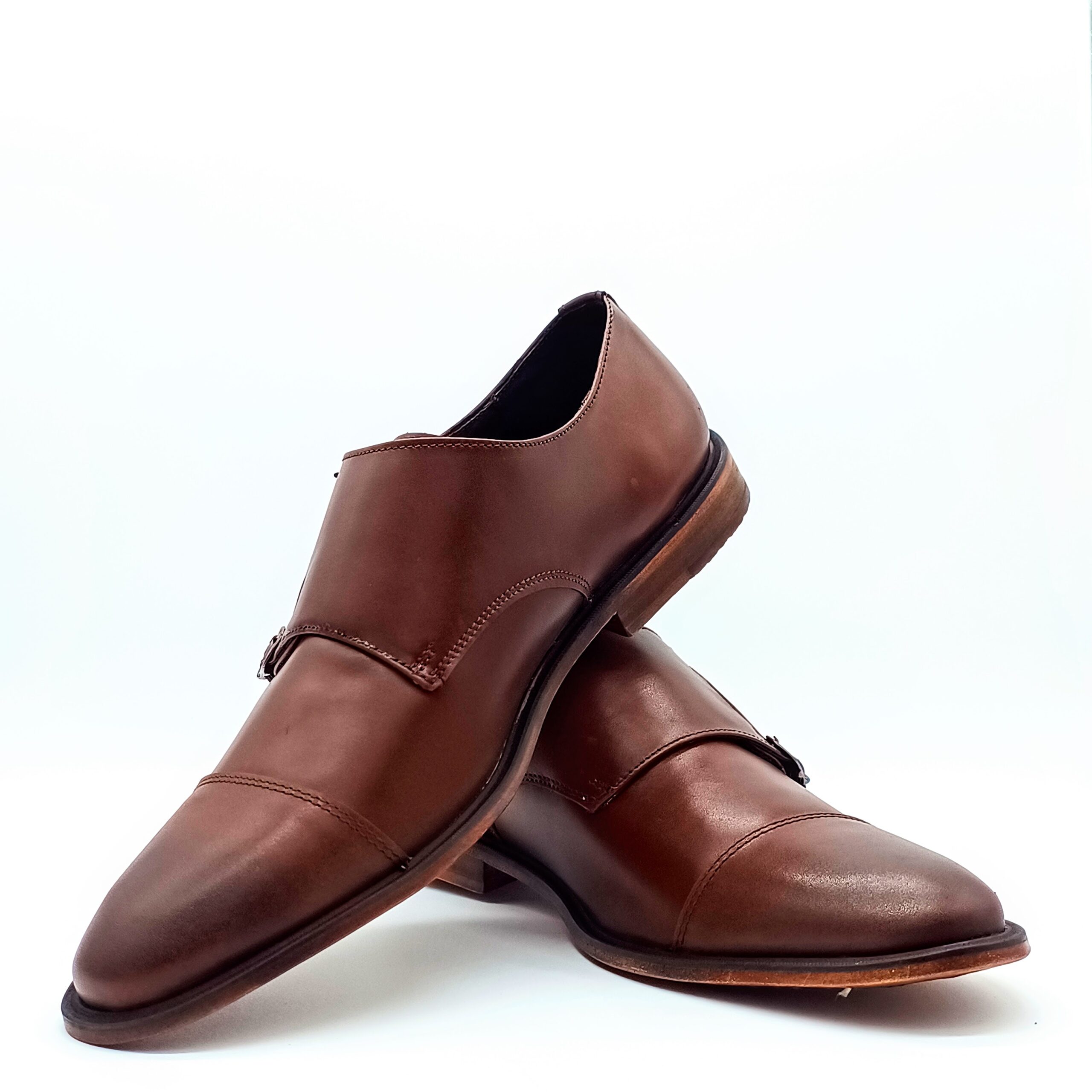 Zapato estilo Monk strap, fabricado 100% en piel genuina, cuenta con el detalle del brochuelo en punta y talón, suela de baqueta, en su interior cuenta con forro de res y plantilla confort.