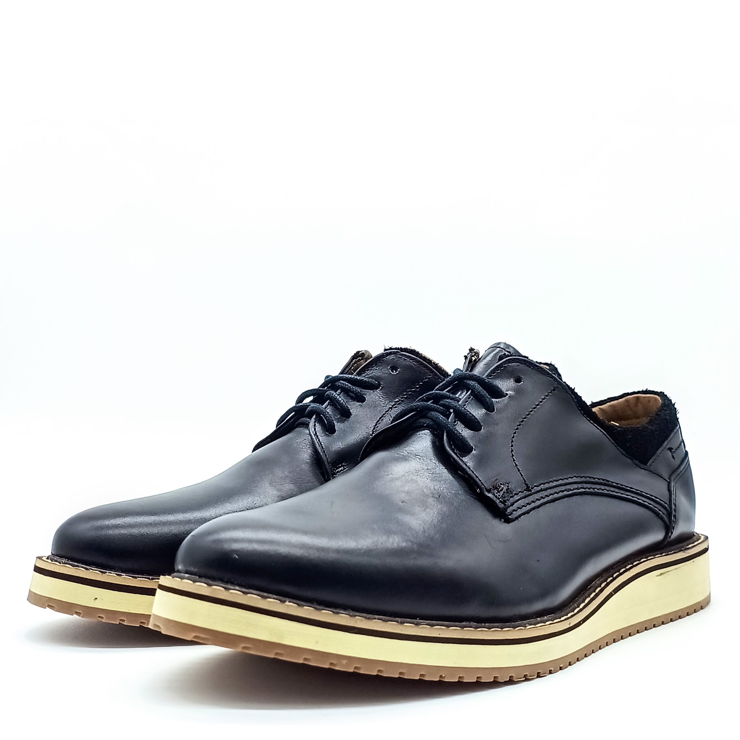 Zapato elaborado 100% en piel vitelo en color negro, cuenta con una suela de 3 cm que realza el color negro del calzado, en su interior cuenta con forro de res y plantilla confort.