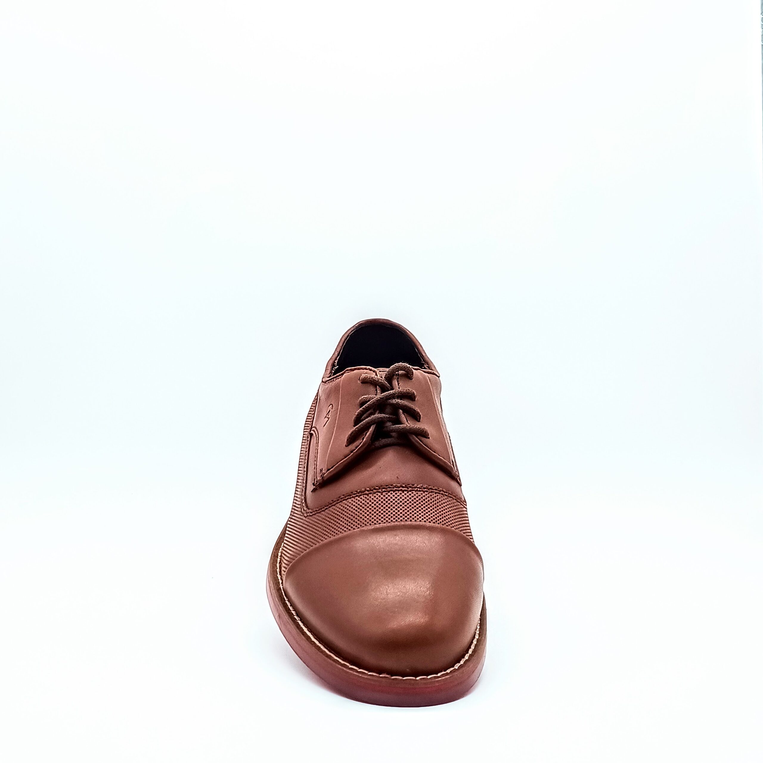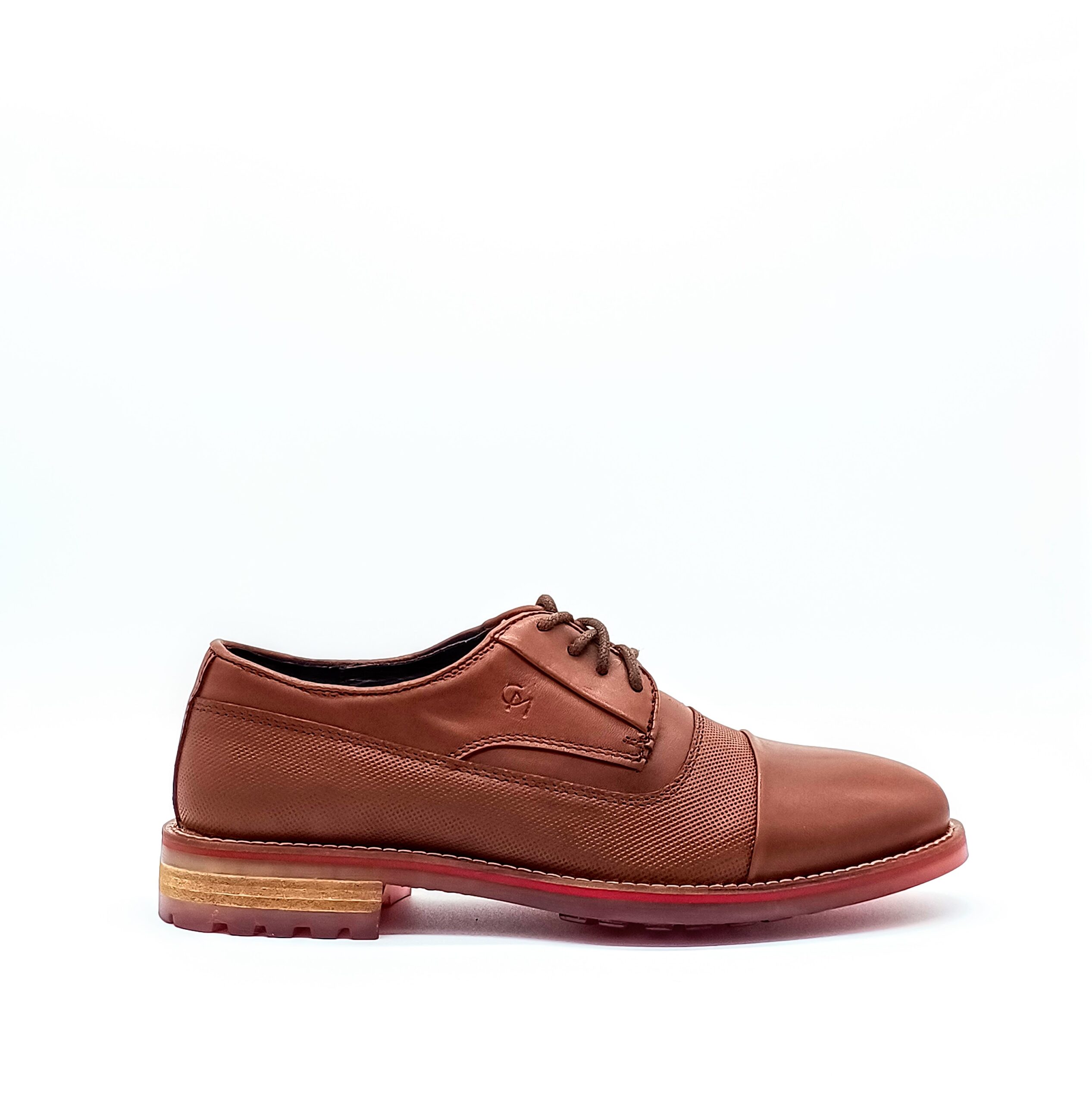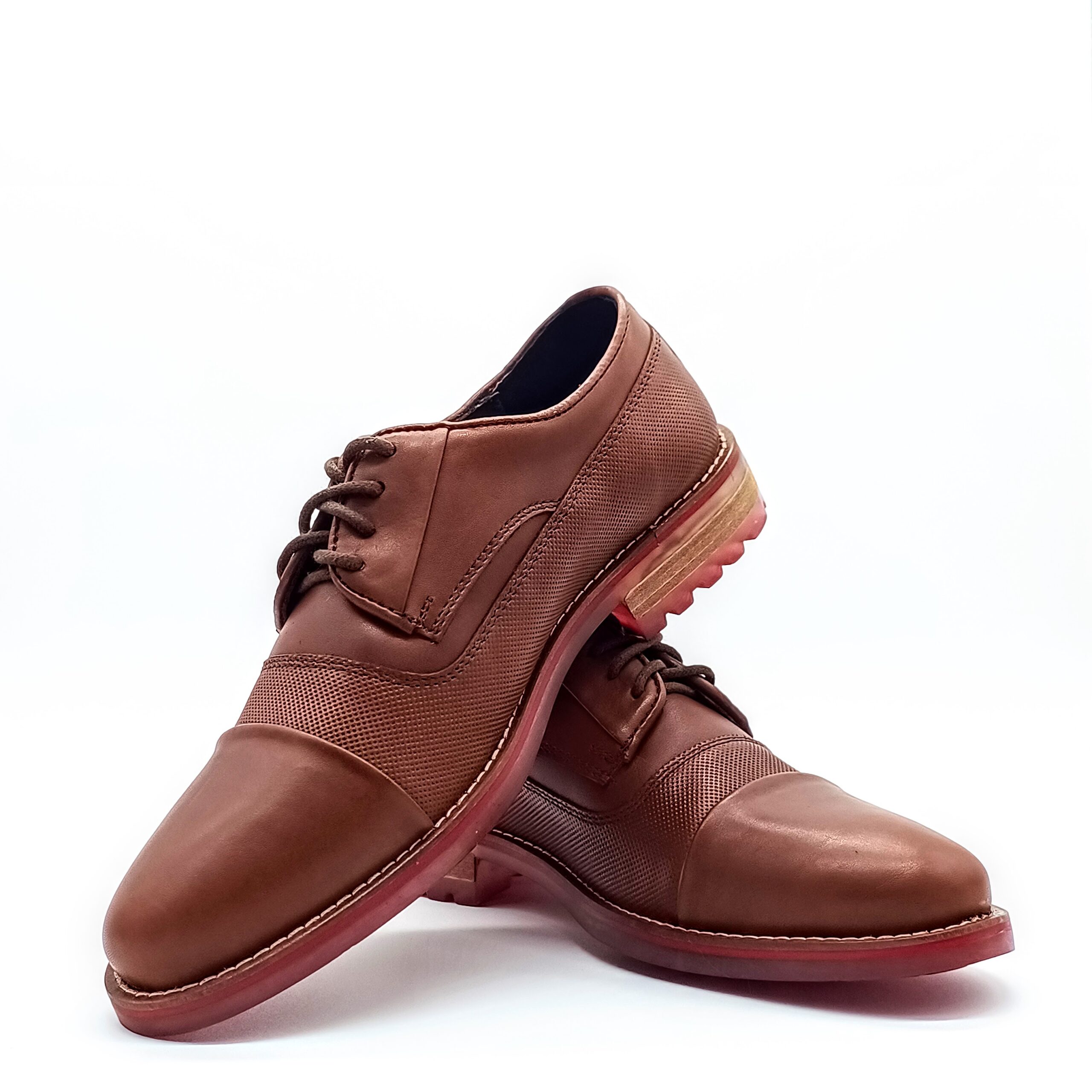 Zapato estilo Oxford elaborado 100% en piel genuina en color brandy, cuenta con suela en color rojo la cual hace un perfecto contraste con el color de la piel, en su interior cuenta con forro de res y plantilla confort.