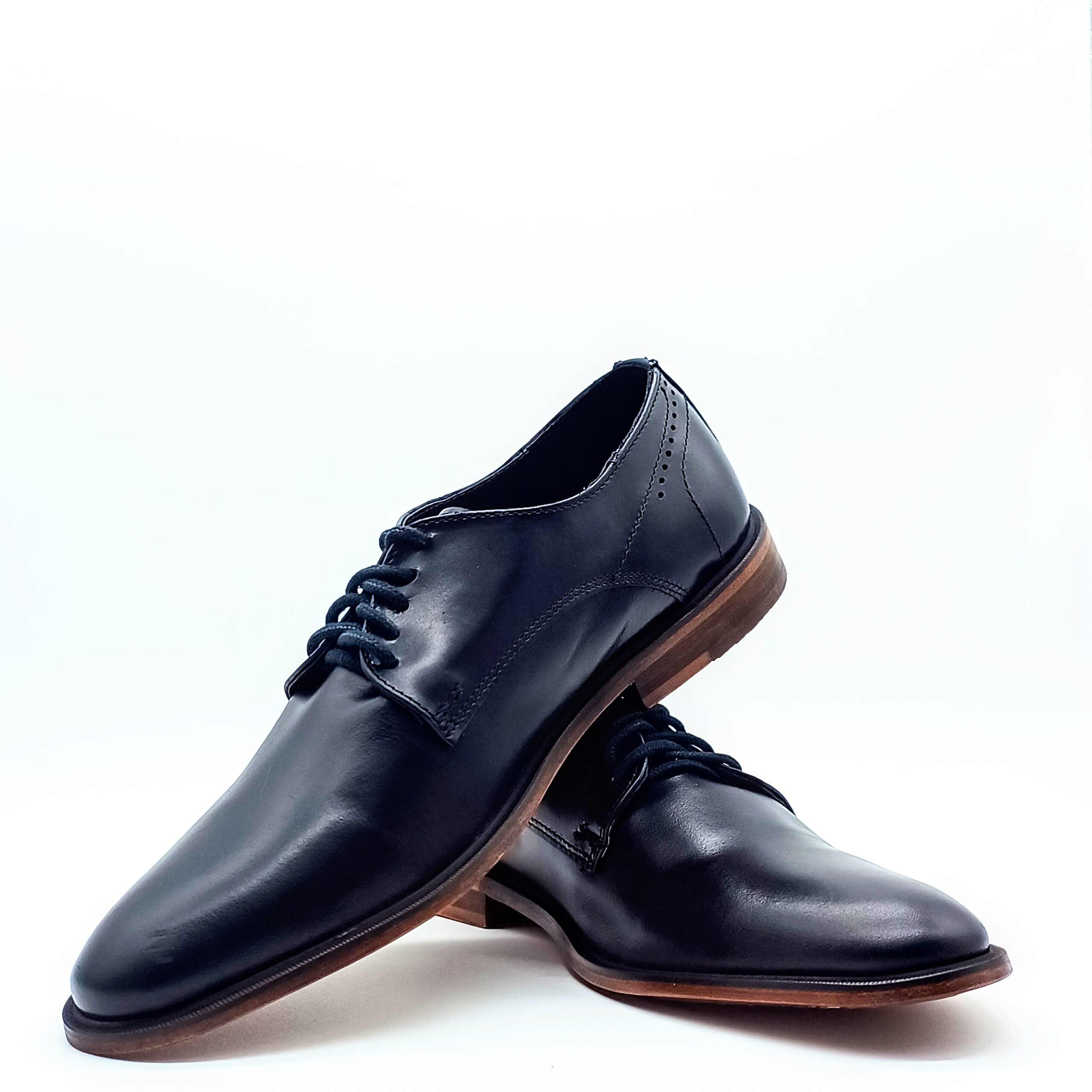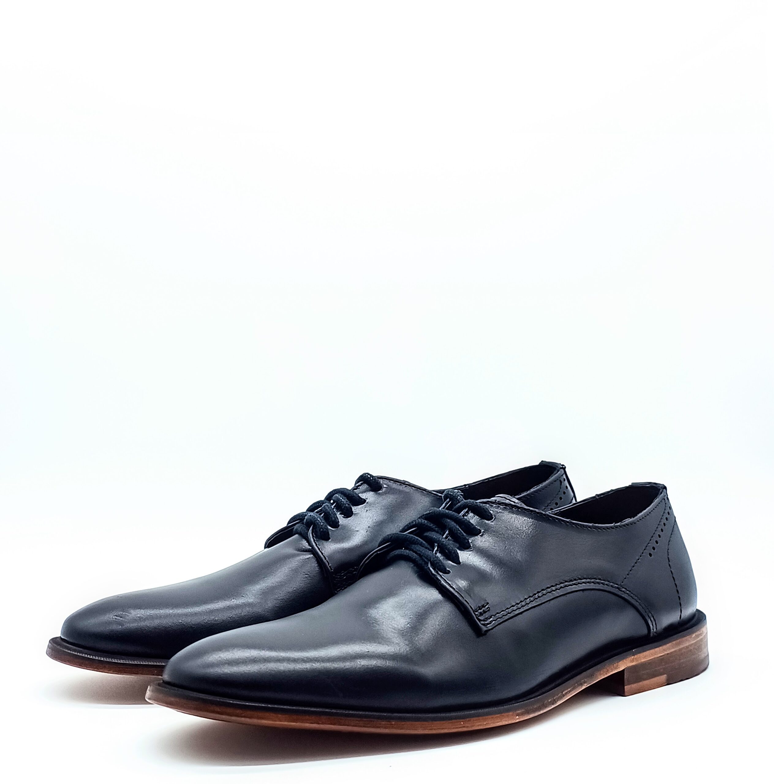 Calzado estilo Oxford, fabricado 100% en piel nappa color negro, en su interior cuenta con forro de res, plantilla confort, este modelo cuanta con suela de cuero.