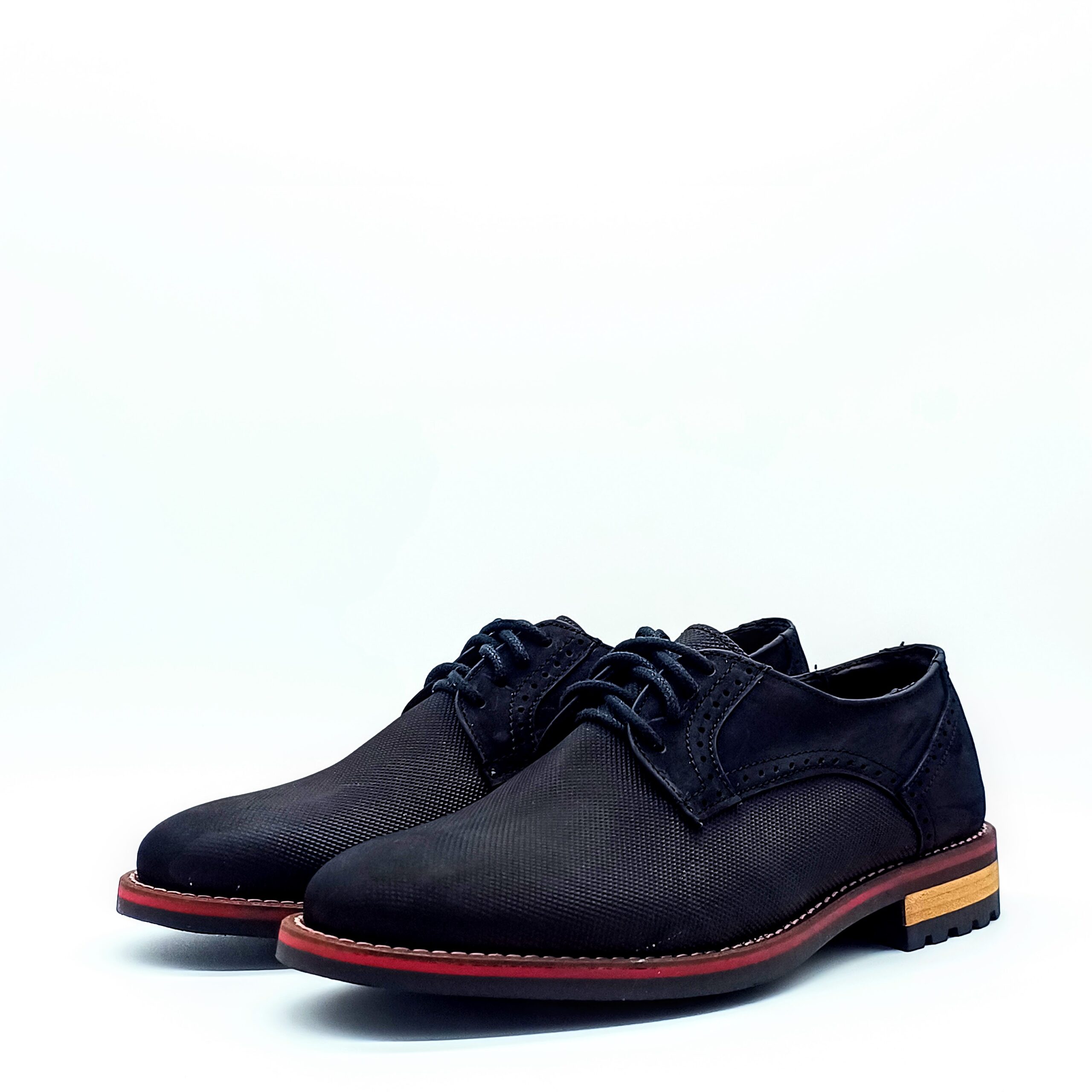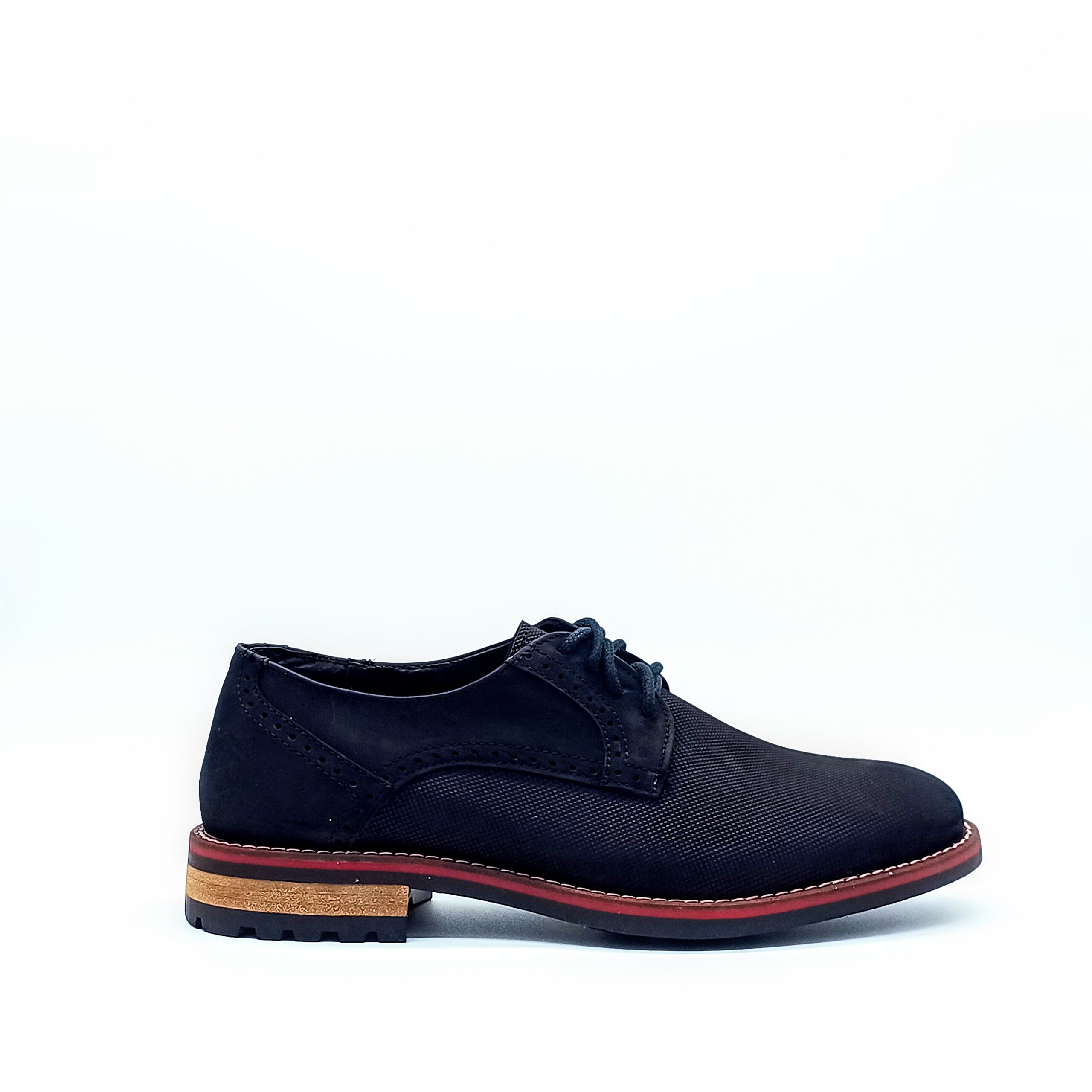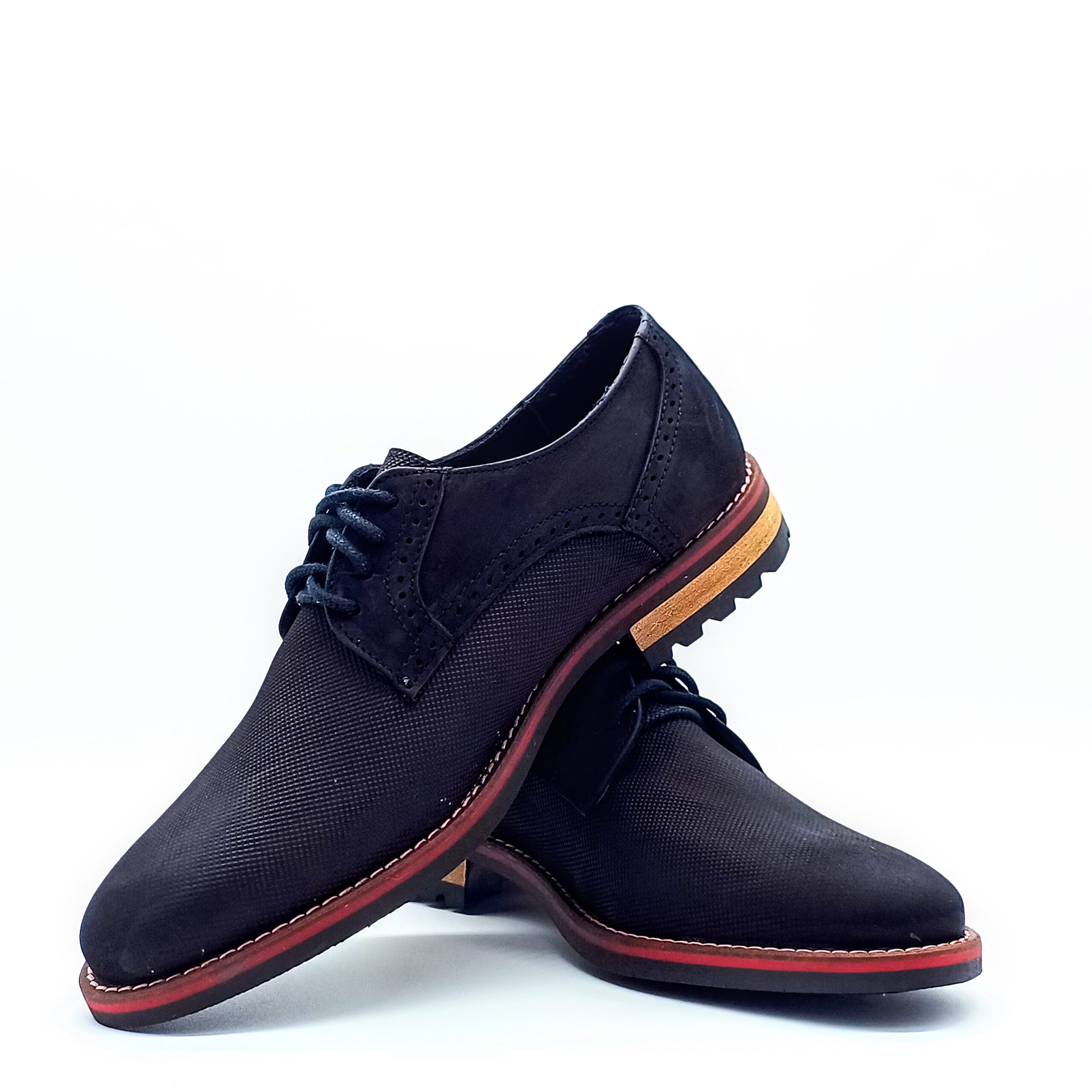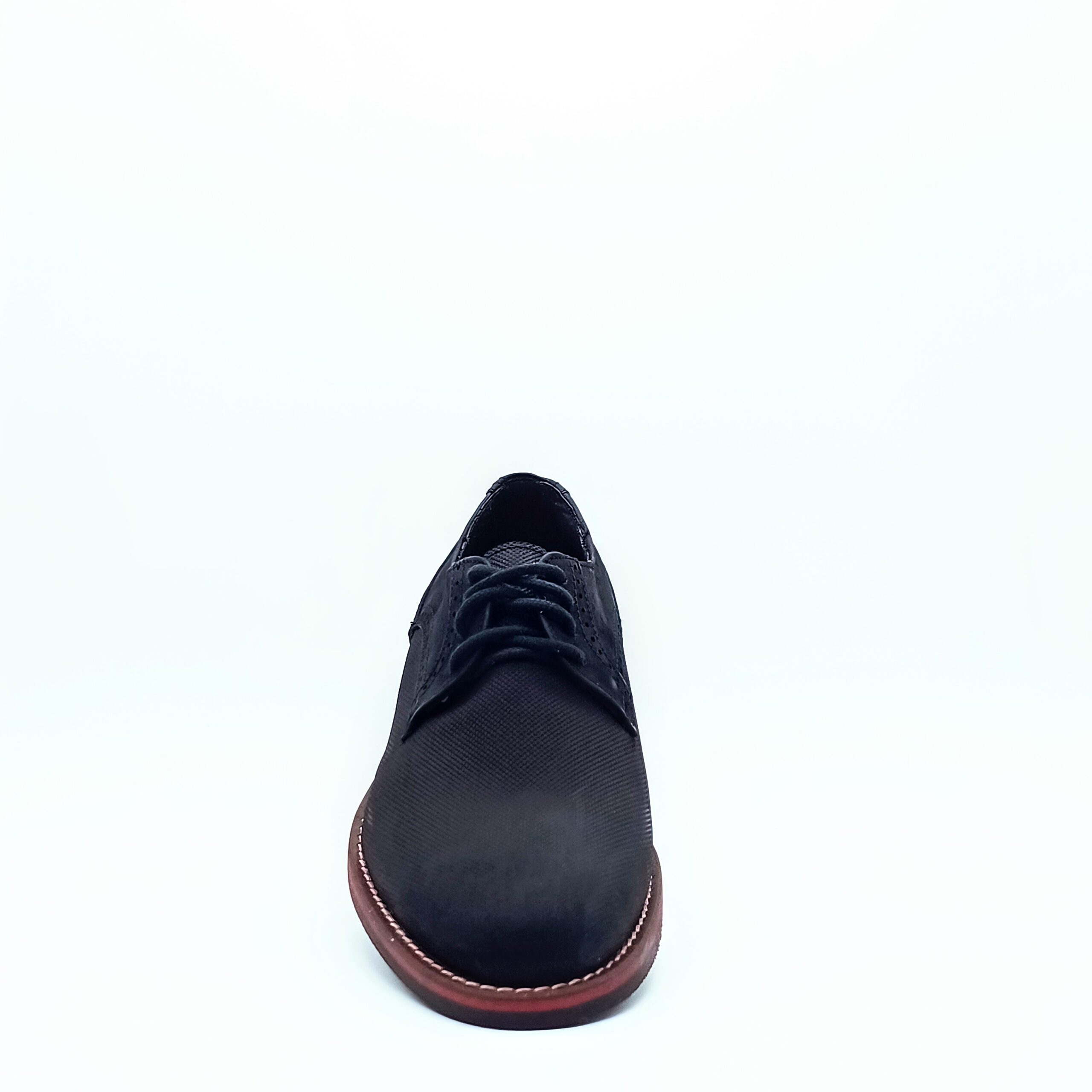 Calzado estilo Oxford fabricado en piel nobuck color negro, la piel con la que se confecciono este diseño da una apariencia perforada, en su interior cuenta con forro de res y plantilla confort, la suela es de TR.