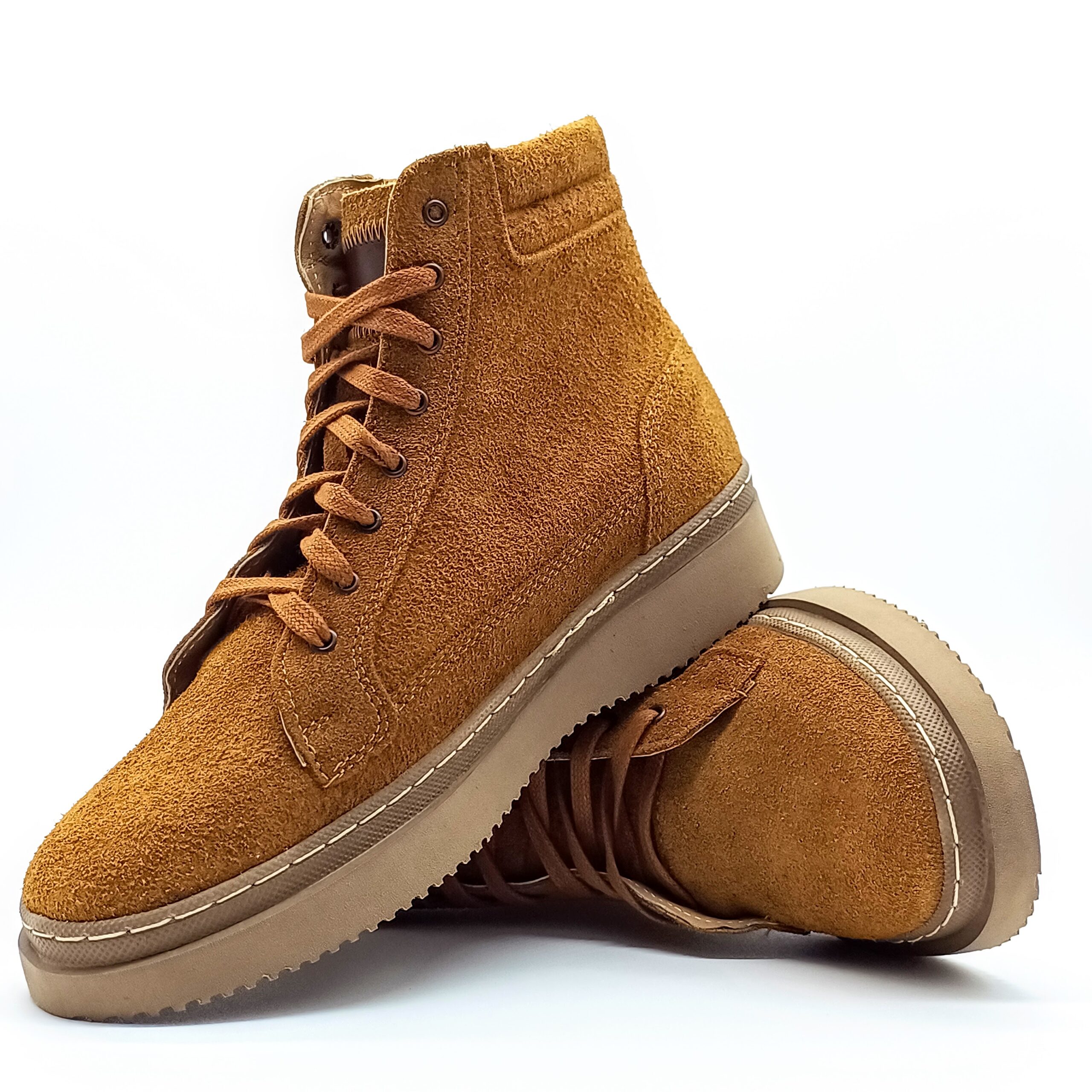 Bota ligera fabricada en piel gamuza color bronce, forro de res, plantilla ultraconfort y suela de EVA.