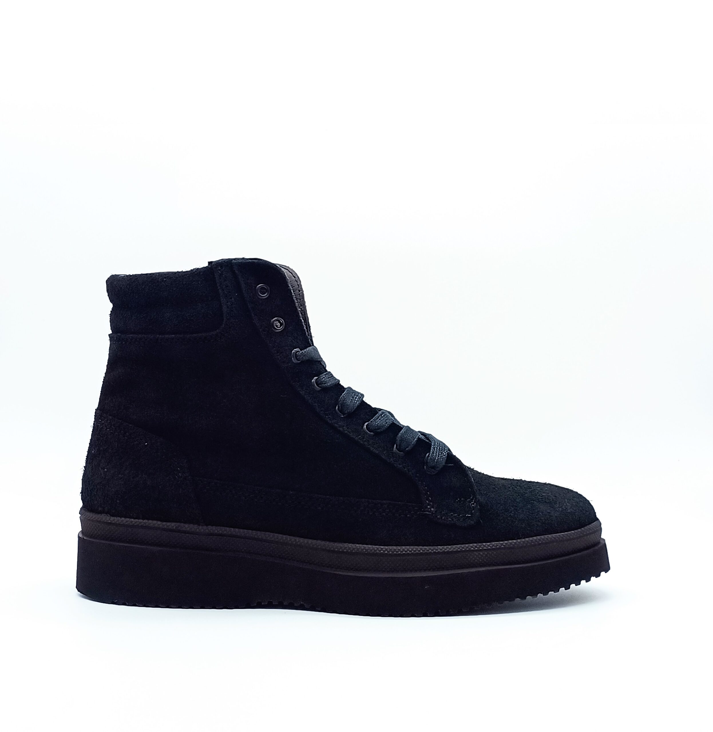 Bota ligera fabricada en piel gamuza color negra, forro de res, plantilla ultraconfort y suela de EVA color negra.