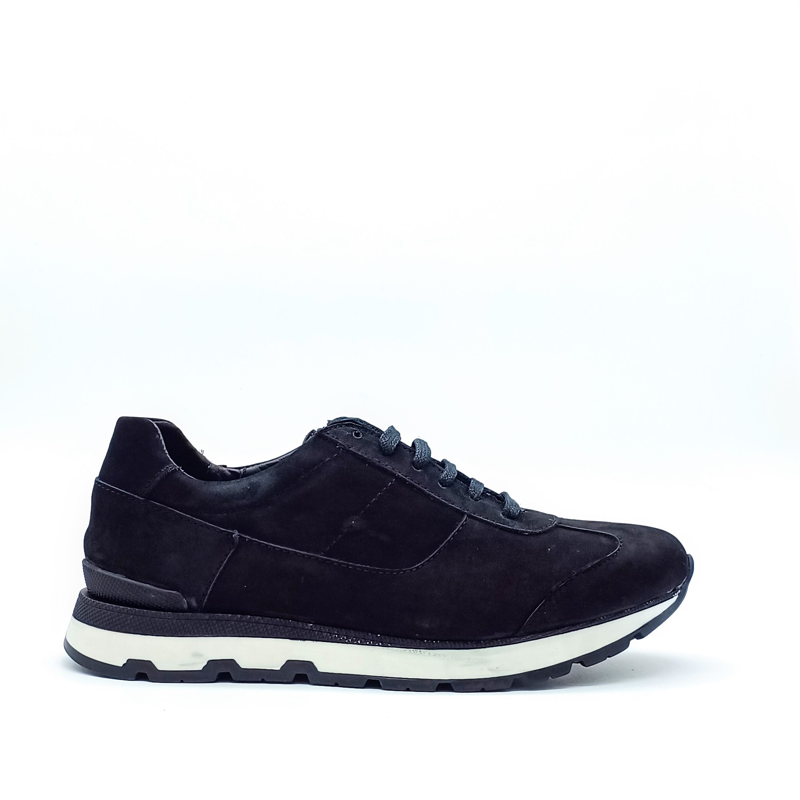 Sneaker Fabricado 100% en piel nobuck color negro, en su interior cuenta con forro de res y plantilla confort, suela sintetica de material TR.